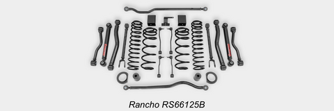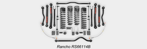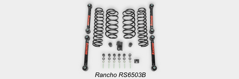 Rancho RS6503B 2.5-In. Sport Suspension System - Features lower control arms and front and rear coil springs that deliver 2.5-in. of clearance to accommodate up to 33-in. tires. Complete your performance upgrade by adding Rancho shocks, Rancho upper control arms (front RS66160B; rear RS66162B) and front adjustable track bar (RS62109); all sold separately.
