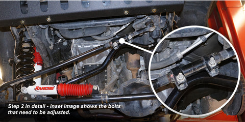 - Retighten the bolts on the drag link adjuster to OEM specifications.