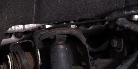 Locate and remove the bolts at the top of the shock. Also remove the bolt that goes through the shock. Once the bolts are removed, take the old shock out.
