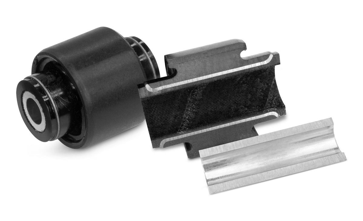 Shock bushings are made of durable polyurethane while D2 control arm bushings are made of strong steel