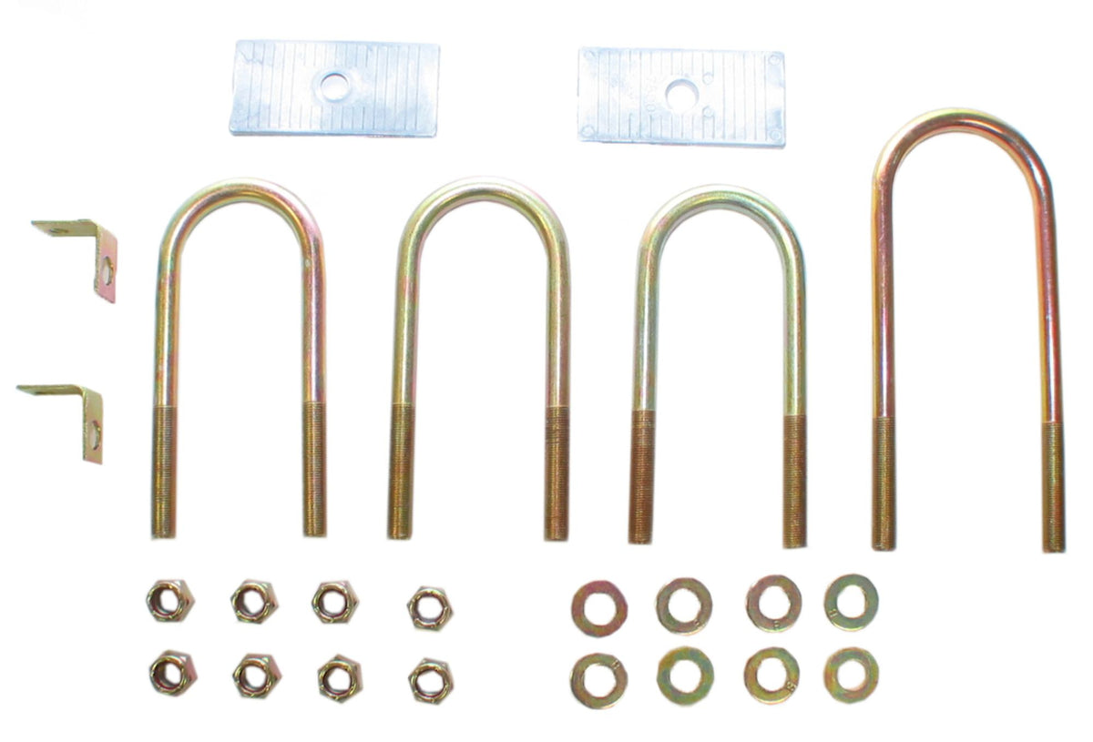 U-bolt kit comes with bolt of your choice and all necessary hardware; block kit includes two rear blocks, four coated U-bolts and all necessary hardware