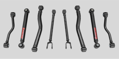 When you lift your vehicle, the tires may start to shift toward the frame. If the lower control arms aren’t long enough, the vehicle’s body and tires could come in contact while off-roading or rock crawling. For vehicles that have a solid front axle, like Jeep Wranglers and Gladiators and many ¾-ton trucks, or vehicles that have a solid rear axle, like the newer Ram 1500 DT, adjustable control arms can improve on- and off-road performance. If you use a stock control arm with taller coils, it can affect the ride and performance of your vehicle. Installing adjustable control arms can help improve the ride of your Jeep or truck. Advantages of aftermarket control arms include a stronger build and an improved bushing at the end of the arm that helps with flex on the trail and absorbing road feel. A stock control arm is usually thin metal, and the stock bushing doesn’t have the best flex capabilities and can wear out fast.RANCHO ADJUSTABLE CONTROL ARMS