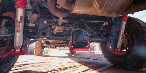 Differential Glide Plate – Rancho rockGEAR offers front and rear differential glide plates for Jeep Wrangler JK and JL Dana 44 and Gladiator JT. Made from 0.25-in. high-strength steel with a durable red powder-coated finish, they deliver a smoother glide over obstacles.