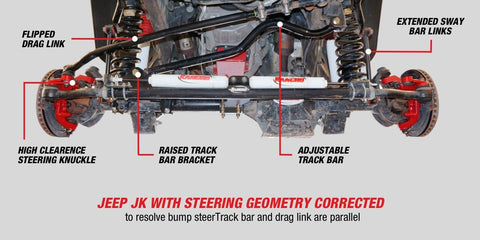 When you lift your vehicle, it alters the geometry of the suspension and can cause a misalignment of the steering system. The effects can be dramatic on taller lifts. On a stock Jeep, the track bar and drag link are parallel to each other, so when you add a lift kit or make other modifications to the suspension, the angles of these two key parts changes.