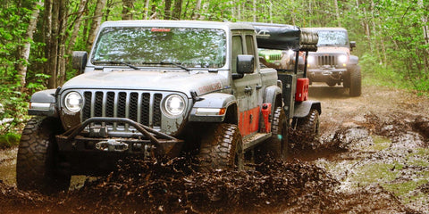Avoid slamming on your brakes. With all that weight you're towing, hitting your brakes suddenly can cause you to jackknife your rig or go into a skid. At the very least, it can cause your load to shift meaning your items may not be where you packed them when you get to your campsite. Be sure to anticipate your stops and give yourself plenty of time to stop your vehicle.Rancho Can Help
